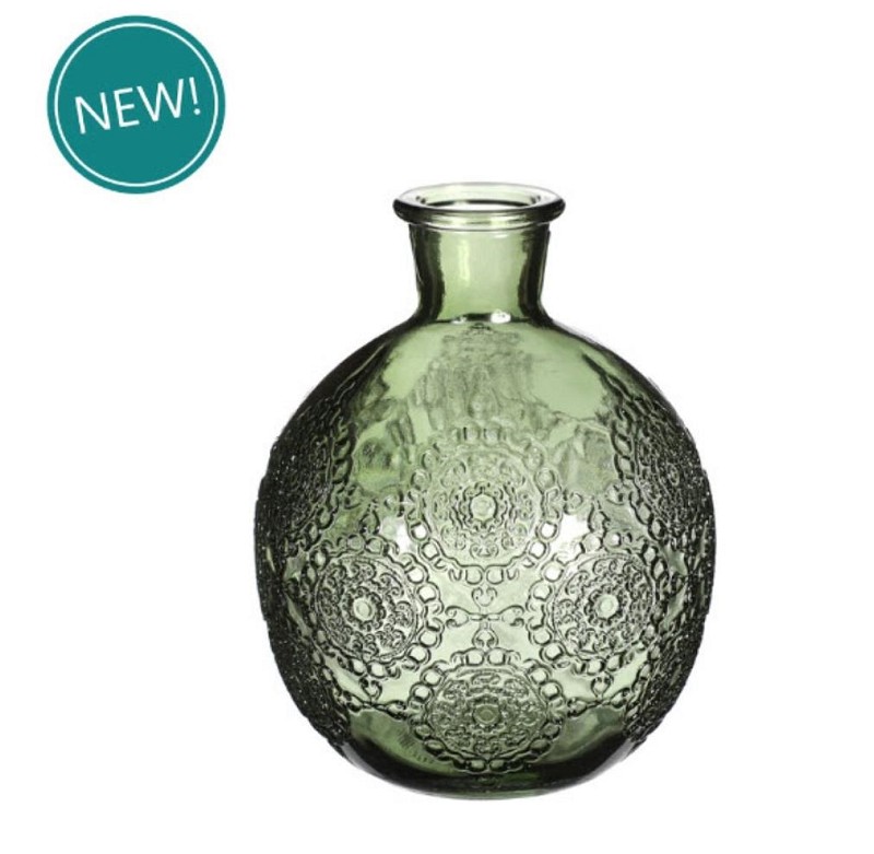 Gekleurde glazen fles bologna donker groen Ø9,5 h.12 cm
