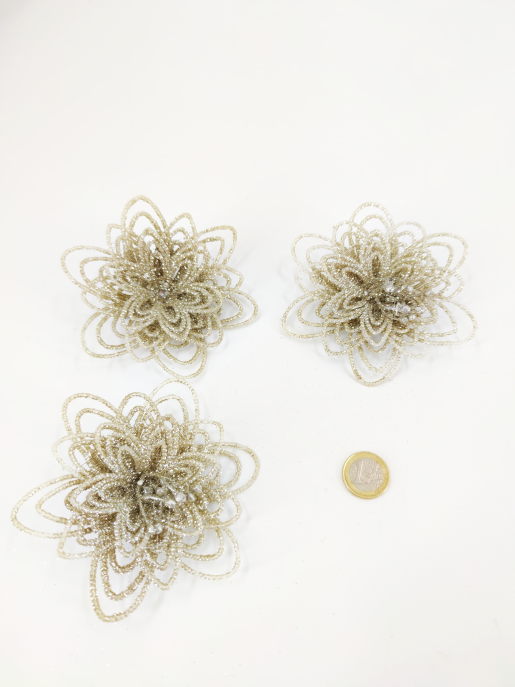 Fleur clip pailleté champagne III 11-12 cm 3 pcs.