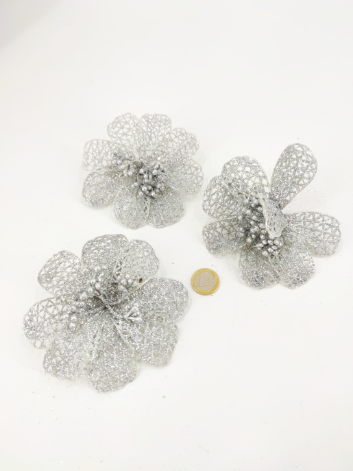 Fleur clip pailleté d'argent II 11-12 cm 3 pcs.